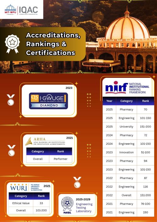 MIT-WPU has received rankings from bodies like NIRF, QS, and Times Higher Education, The World University Raking for Innovation and these rankings often consider aspects related to sustainability and social impact, indirectly reflecting its commitment to SDGs.